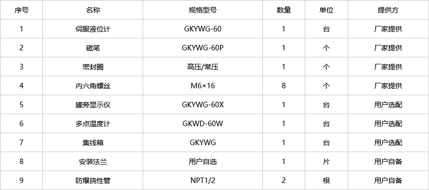 GKYWG-60伺服液位計是河北光科測控設備有限公司自主研發生產的以微電子技術伺服電機驅動測量液位、界位、密度、多點平均溫度的高精度測量儀表??蓪Ρ粶y介質進行液位、界位、密度、溫度的準確測量,同時還具有儲罐平均溫度、液下平均溫度、單點溫度進行傳遞等功能,可以滿足儲罐存量管理、重大危險源實時監控的需求。